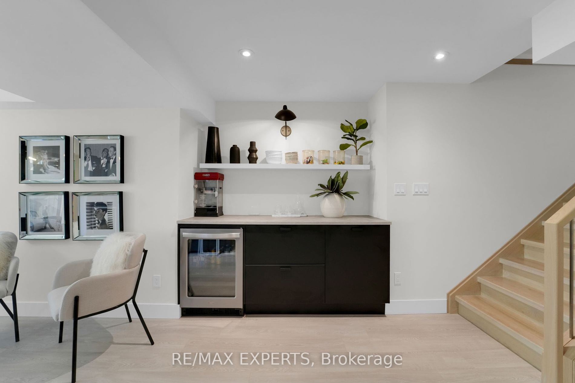 – Custom kitchen with quartz countertops, island, bar fridge, and premium appliances